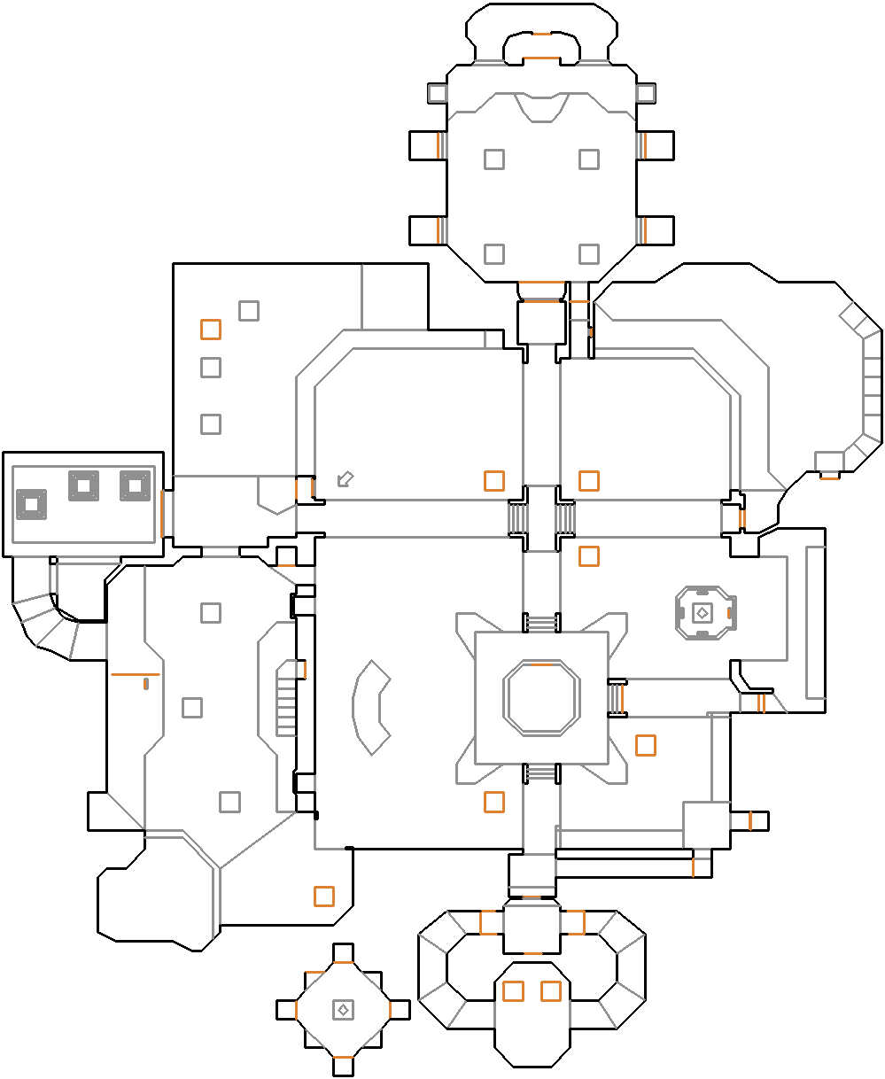 In this map you'll basically be spending time walking on three long corridors, getting shots from enemies all around you. Cover is hard to get here, so if you don't watch out, you'll die pretty easily.
